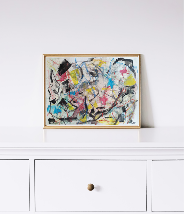 “Midnight Thoughts” is an abstract artwork capturing the endless loop of thoughts on a sleepless night. But in that moment, when nothing else matters, all worries fade into the infinite space of abstraction.