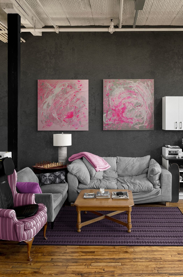 “PunkPink” captures the power of pink to motivate and give energy to every room. It is a diptych which goes together with its counterpart "PinkPunk"
